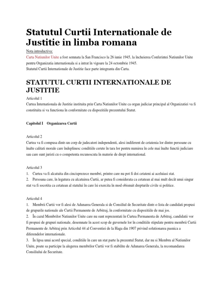 Statutul Curtii Internationale De Justitie In Limba