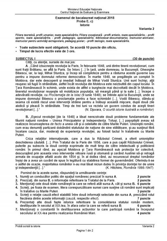 Bac 2018 Istorie 22 08 2018 Subiecte Date Si Barem Edu Proba E C Sesiunea August Septembrie Jitaruionelblog Pregatire Bac Si Evaluarea Nationala 2020 La Matematica Si Alte Materii Materiale Lectii Formule Exercitii Rezolvate