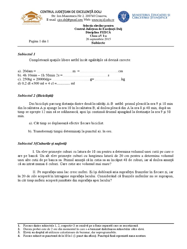 Subiecte Clasa A Vi A