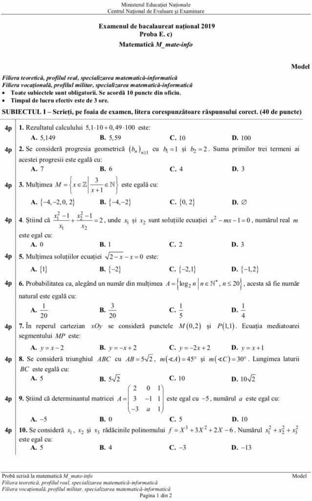 Edu Ro Simulare Bac 20 Martie 2019 Xi Xii Matematica Subiecte Si Bareme Mate Info Stiinte Tehnologic Pedagogic Proba E C Clasa A 11 A Si Clasa A 12 A Jitaruionelblog Pregatire Bac Si Evaluarea Nationala
