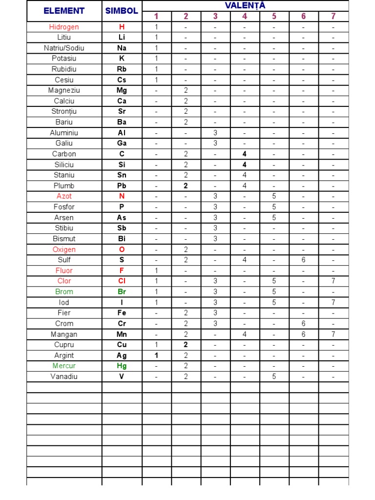 Tendinţa găsirii unei clasificări naturale a elementelor certitudinea că există o legătură strânsă între o mărime fundamentală caracteristică. Save save tabel valente for later. Interactive periodic table showing names electrons and oxidation states. Tabelul periodic al elementelor câteodată numit și tabelul periodic al lui mendeleev cuprinde într o formă tabelară toate elementele chimice aranjate în funcție de numărul lor atomic adică după numărul de protoni dintr un atom și în funcție de configurația electronică și unele proprietăți chimice recurente.