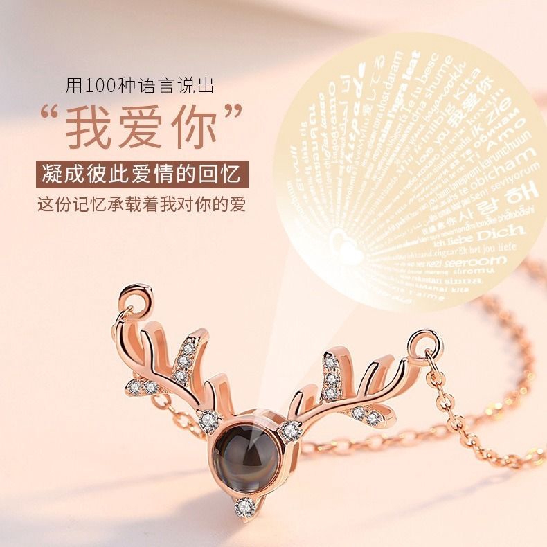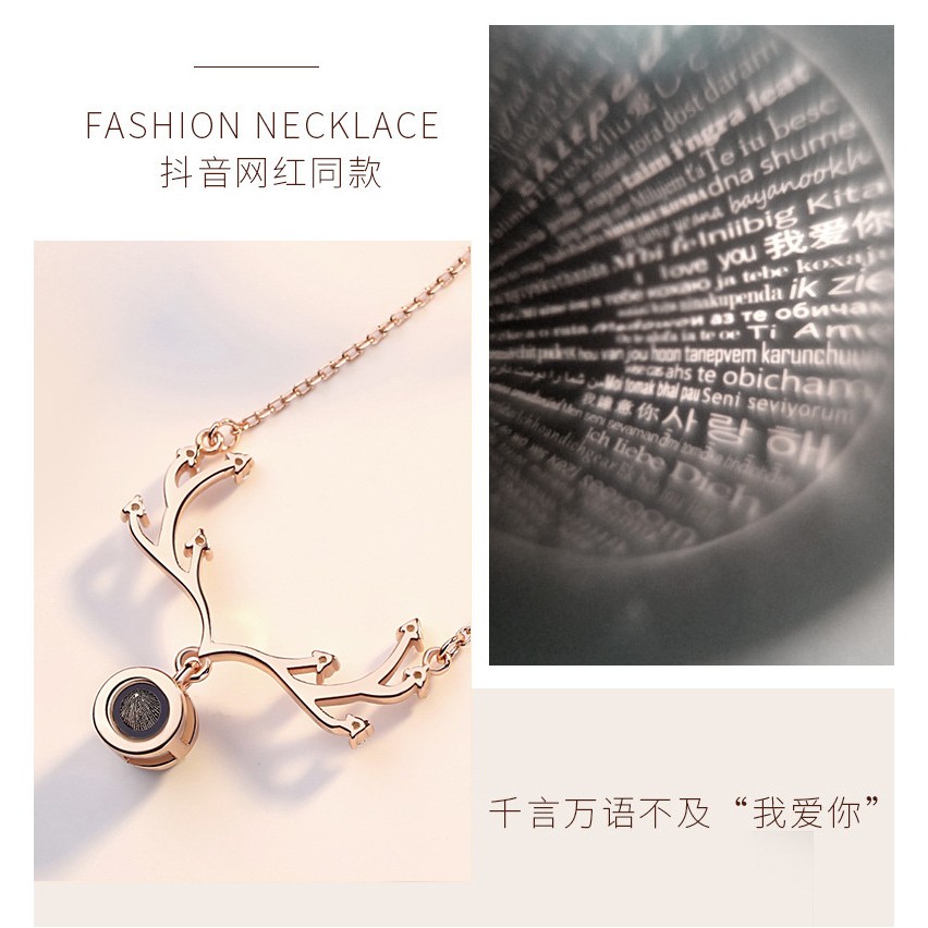 Spot Jewelry Kalung Rantai Clavicle Liontin Tanduk Rusa Tulisan I Love You 100 Bahasa 100 Jenis Untuk Wanita Shopee Indonesia